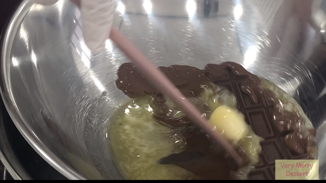 2. 초콜릿과 버터를 녹여줍니다. (중탕, 전자렌지 가능)